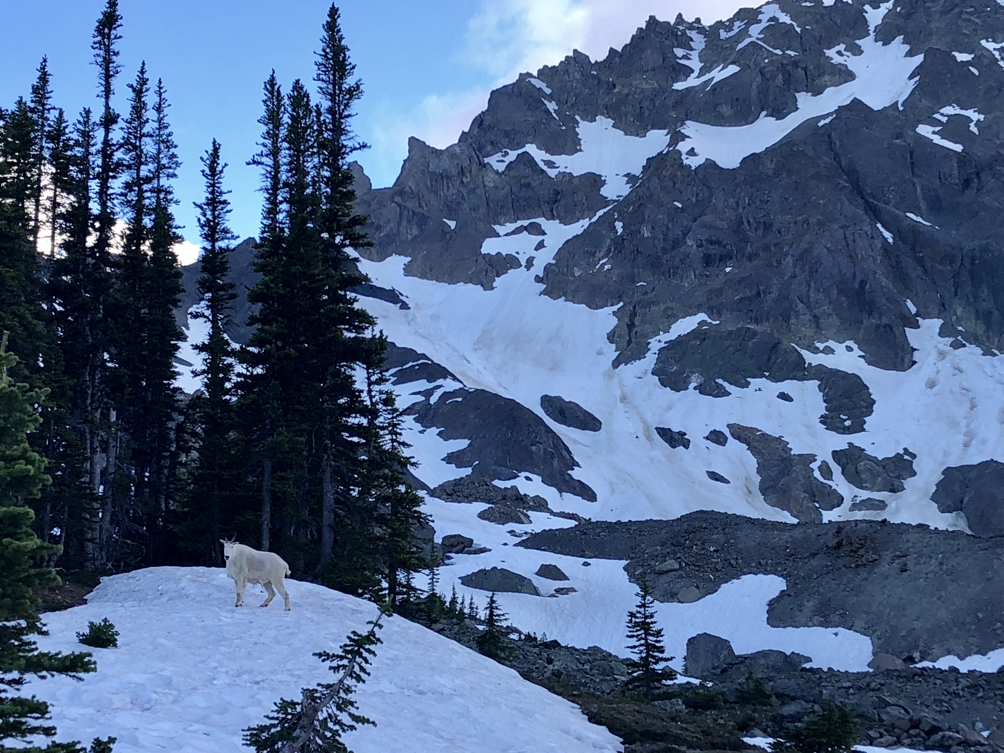 This experience was truly epic. I can’t imagine a more patriotic way to spend Independence Day than basking in the glory of a national park. This was a long, grueling hike – 16 miles round trip with about 2,650 ft elevation gain and a heavy pack. But it was all worth it for the solitude and majesty we experienced at the upper basin – or at least, almost solitude. We had a very nosy goat visitor.