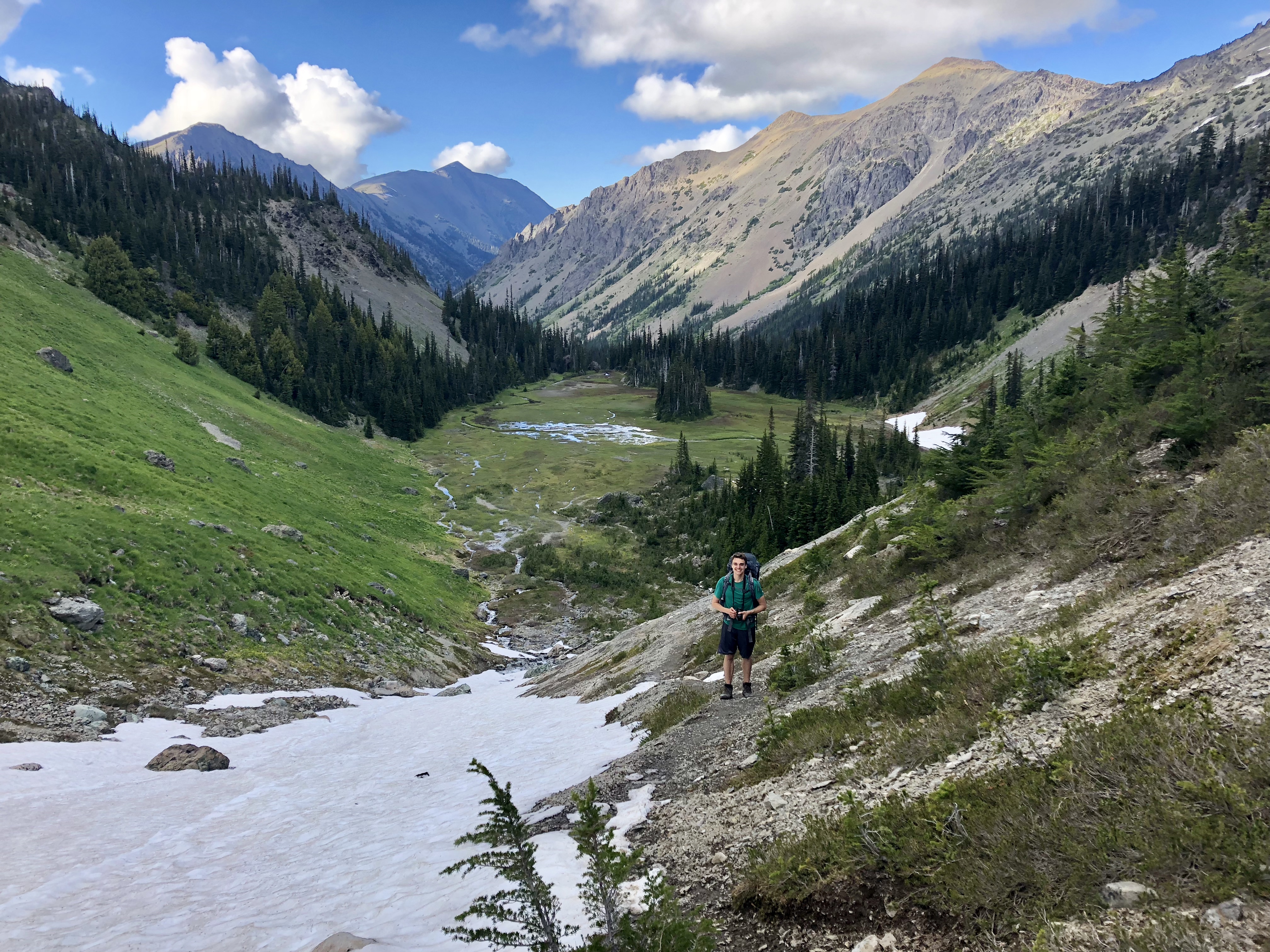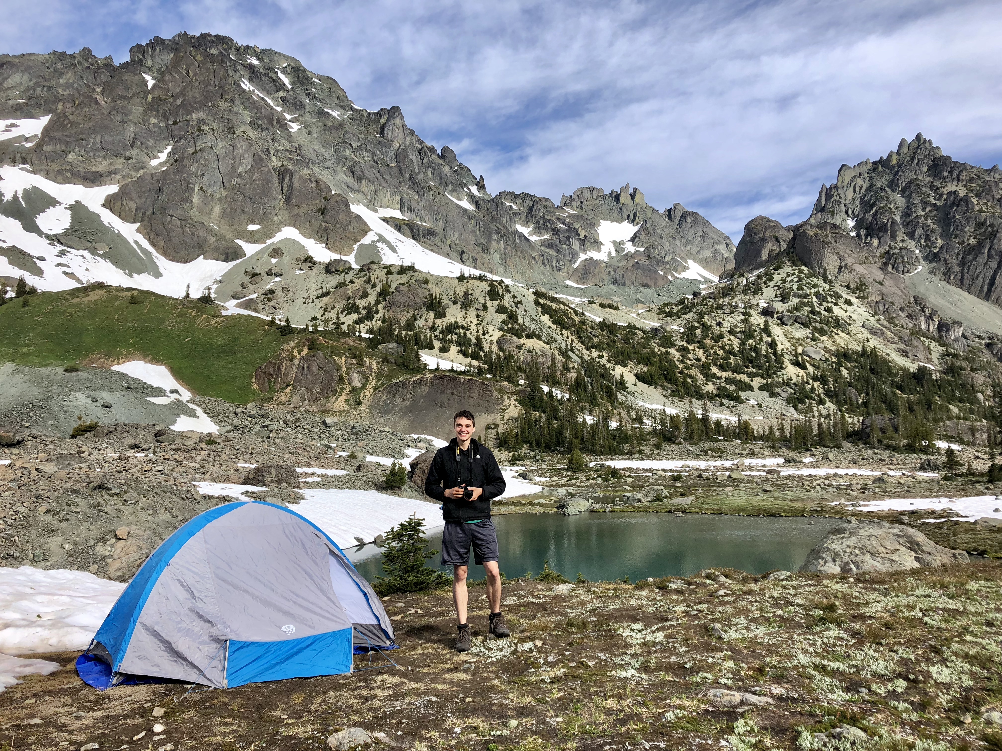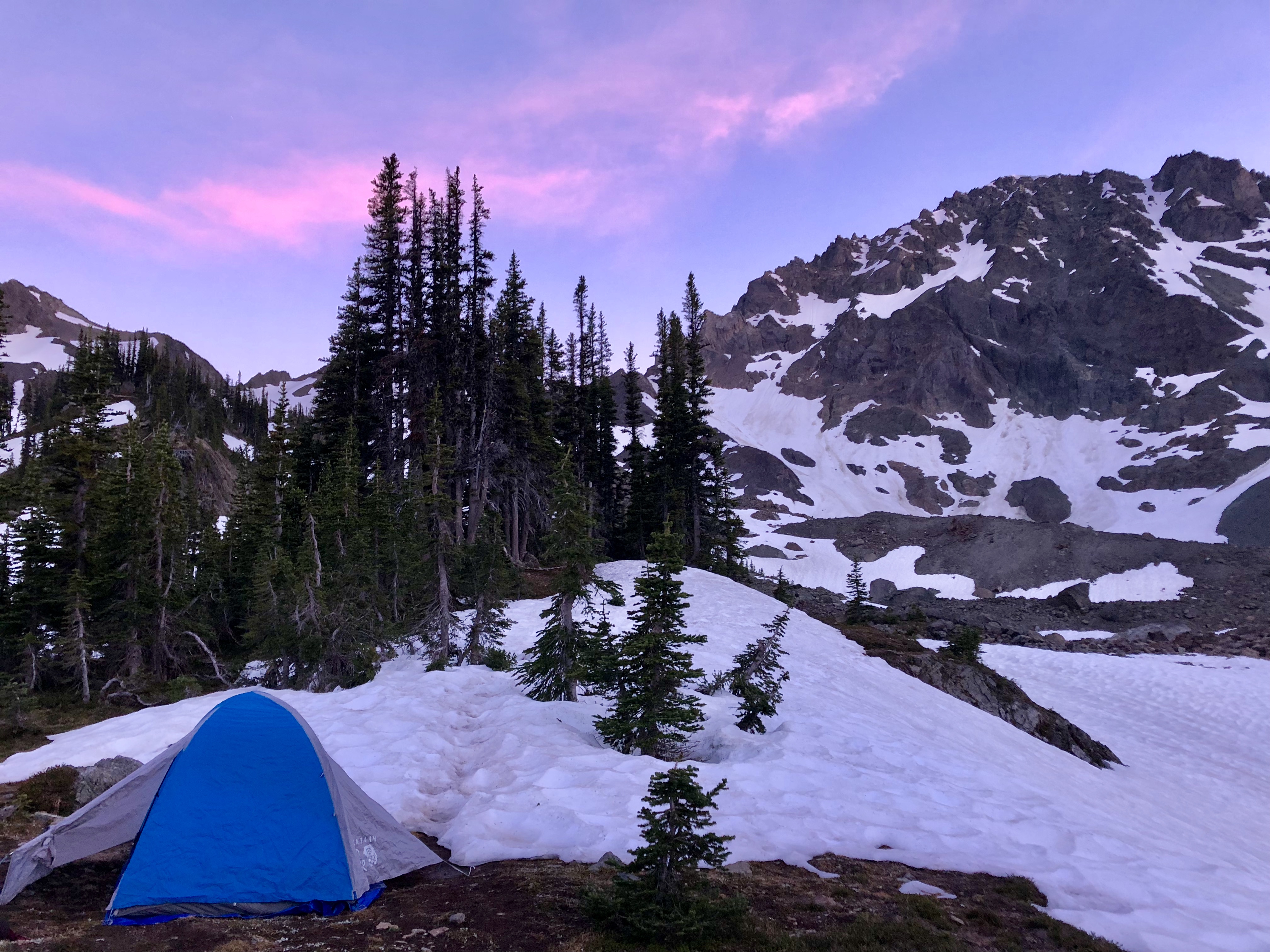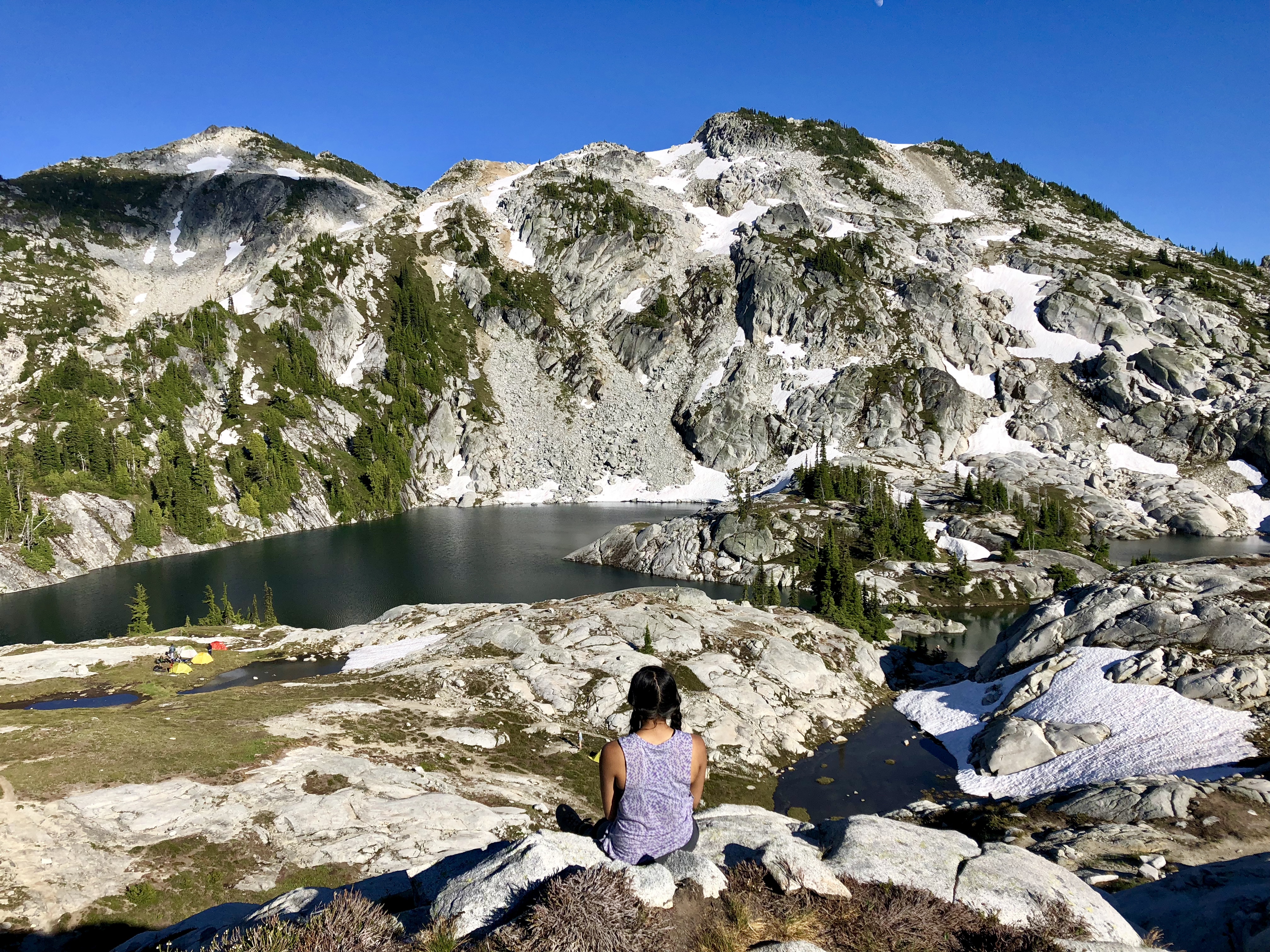 The lower basin features a big green lake with up-close views of a snow-capped mountain as the backdrop. As picturesque as this was, it was no match for the views from the last mile and upper basin. The final push was tough, as we climbed about 1000 feet. We ascended to a valley with marmots, streams and lush greenery before hitting snow. From there, the trail became ambiguous but we eventually found our way to the small but stunningly turquoise upper lake. Waking up to the basin fully lit, enjoying breakfast with a sense of serenity and accomplishment is an experience I won’t soon forget.
