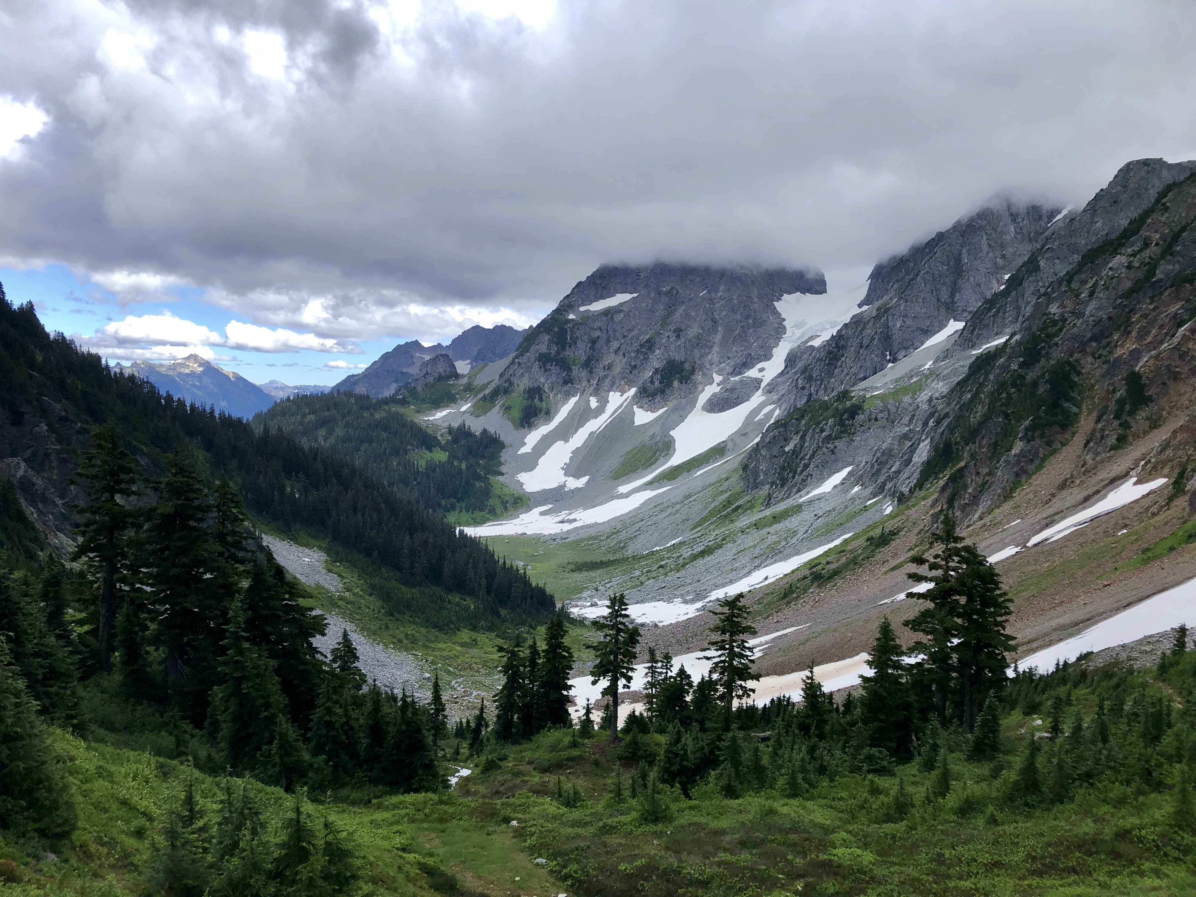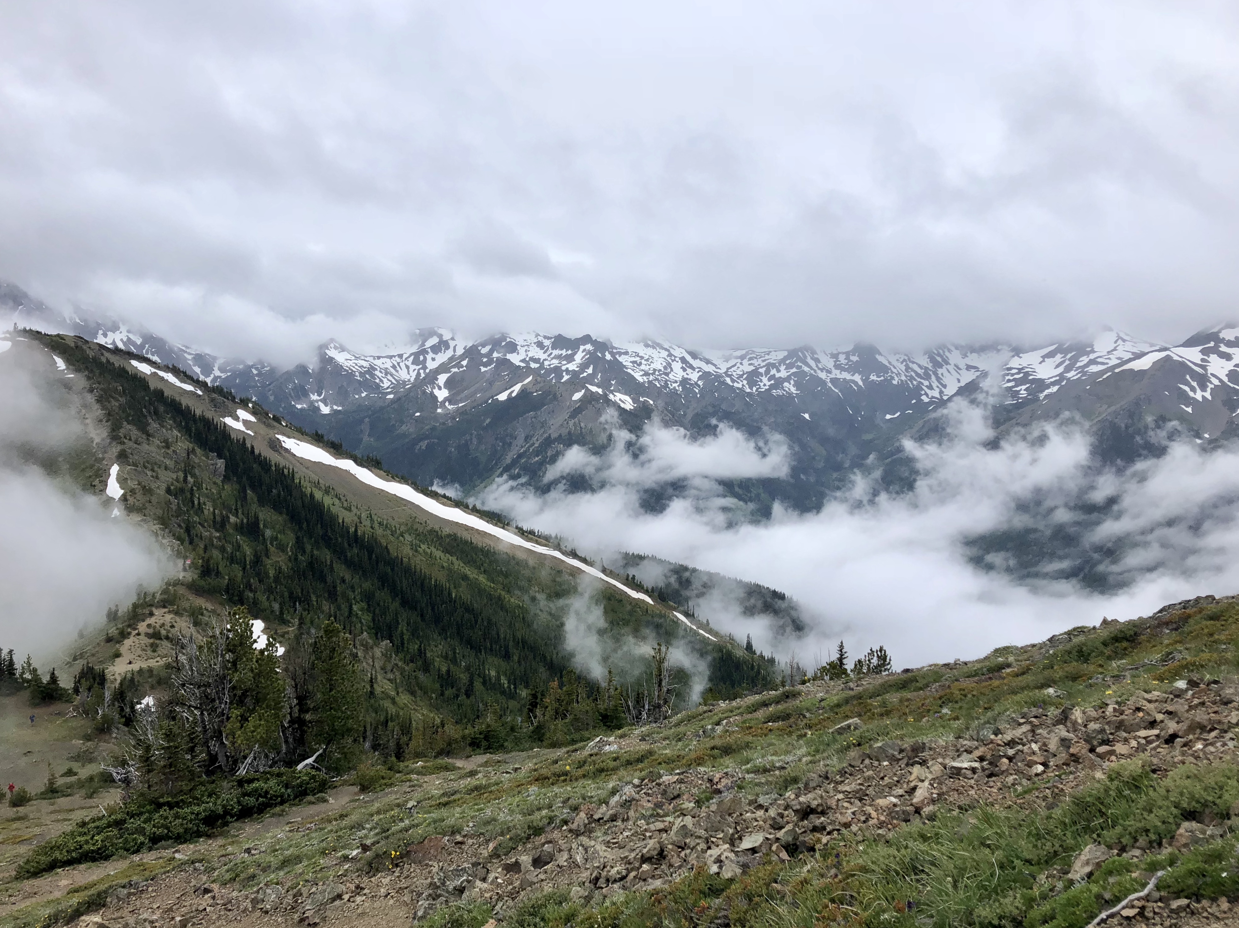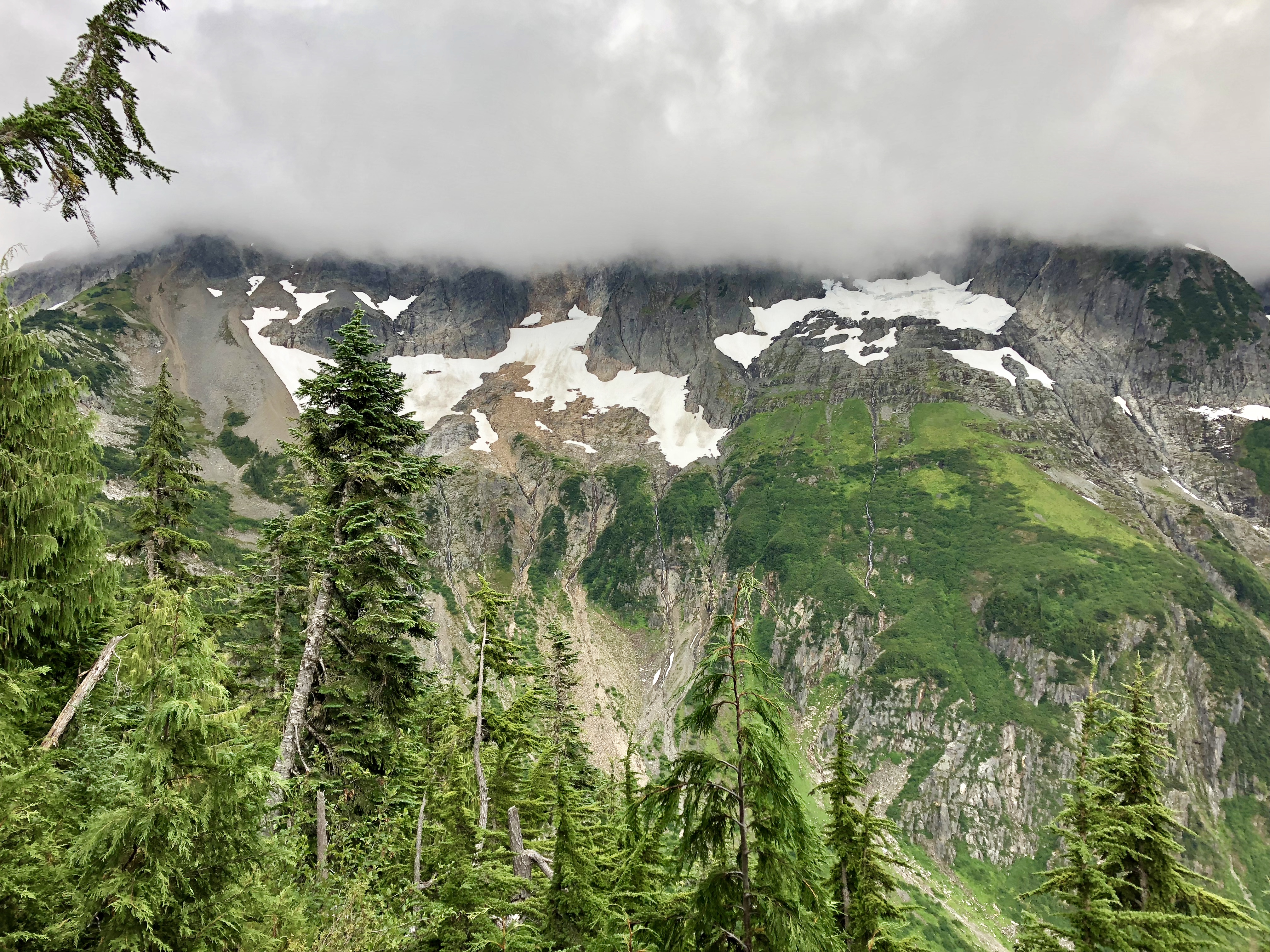 We hiked Cascade Pass on a cloudy, drizzly day which added a sublime mystique to the overall aura of the North Cascades. Across the valleys of rising fog, we enjoyed expansive views of lush, green mountains with residual snow patches. Though the area is notorious for bear encounters, the only wild life we encountered were marmots. This trail’s ridgeline views of surrounding mountains were a pleasant shift from the Northwest’s traditional fully wooded ascents.