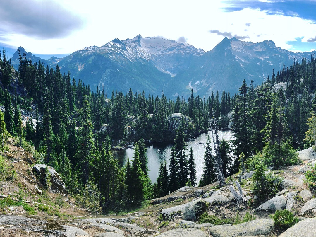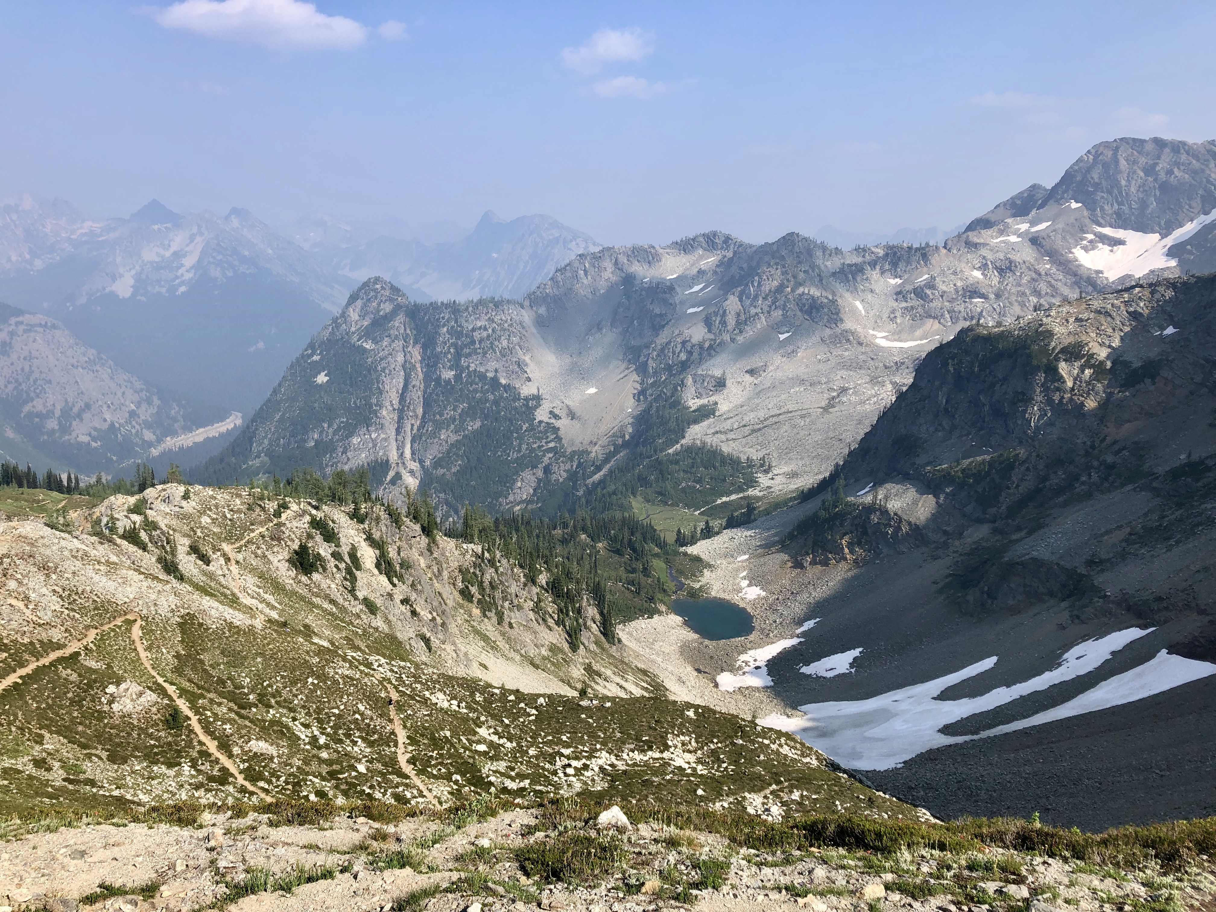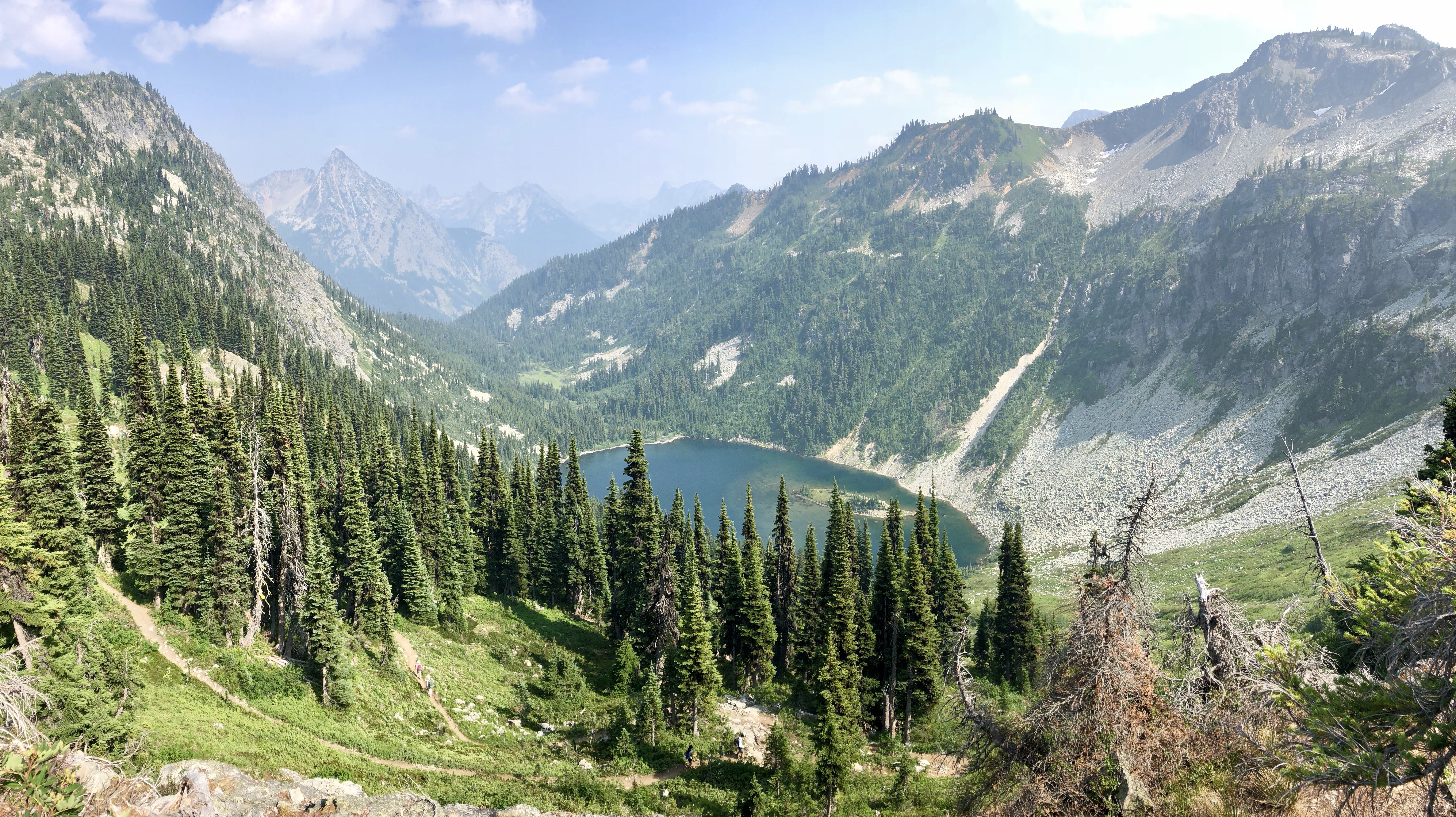We hiked Cascade Pass on a cloudy, drizzly day which added a sublime mystique to the overall aura of the North Cascades. Across the valleys of rising fog, we enjoyed expansive views of lush, green mountains with residual snow patches. Though the area is notorious for bear encounters, the only wild life we encountered were marmots. This trail’s ridgeline views of surrounding mountains were a pleasant shift from the Northwest’s traditional fully wooded ascents.