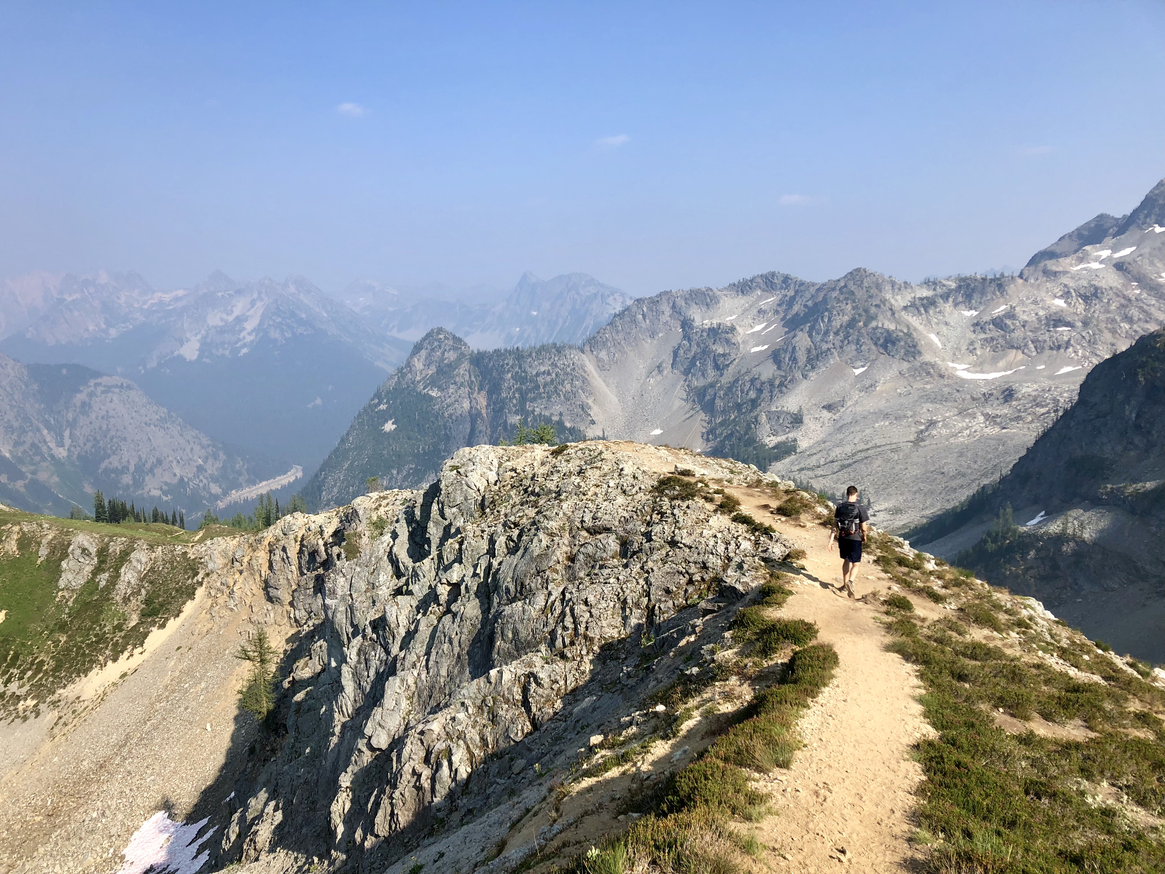 If you’re looking for a high effort-to-reward ratio hike, look no further than Maple Pass in the North Cascades. Weighing in at 7.2 mi round trip with just 2000 ft of elevation gain, this hike punches out of weigh class with a mostly exposed trail showing off mind-blowingly expansive views of the Cascades and several turquoise lakes. We went on a hazy day due to surrounding forest fires but even so, we were spoiled by mountain views as far as we could see. Bonus points are awarded for the loop format of the trail, giving new and interesting views at every turn. Everything about the experience – from the lack of crowds to the ease of incline – was leisurely. This hike might be a contender for my most enjoyable hike in Washington.